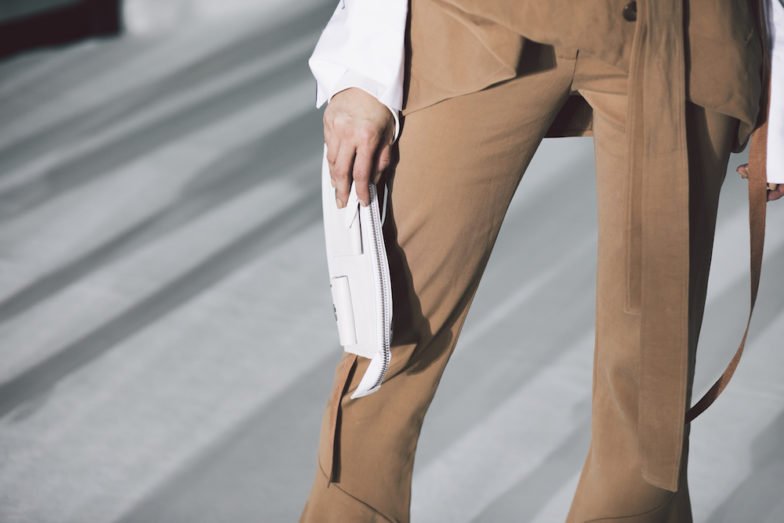 Completing the outfit were my 3.1 Phillip Lim mules and a matching clutch—a nod to modern elegance that tied the look together seamlessly. The footwear, with its clean lines and subtle shine, provided a contemporary counterpoint to the rugged, deconstructed style of the top and pants. Every detail was meticulously chosen to embody the ethos of earthy sophistication.