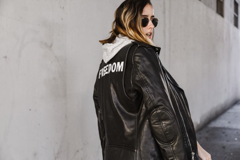 This look is rooted in the idea that off-duty style in your 20’s is synonymous with spontaneity. It’s about mixing textures and styles—combining the coziness of a sweatshirt with the edge of a leather jacket—to create an outfit that’s as versatile as it is comfortable. The resulting vibe is one of effortless cool, where every piece feels like a natural extension of your personality.